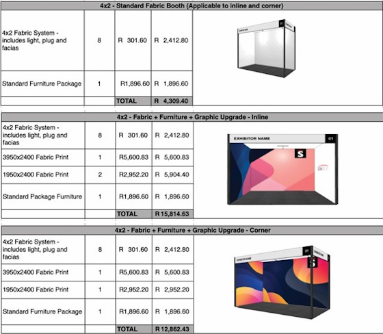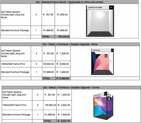 Floor space only, excludes fabric system. ZAR and includes VAT