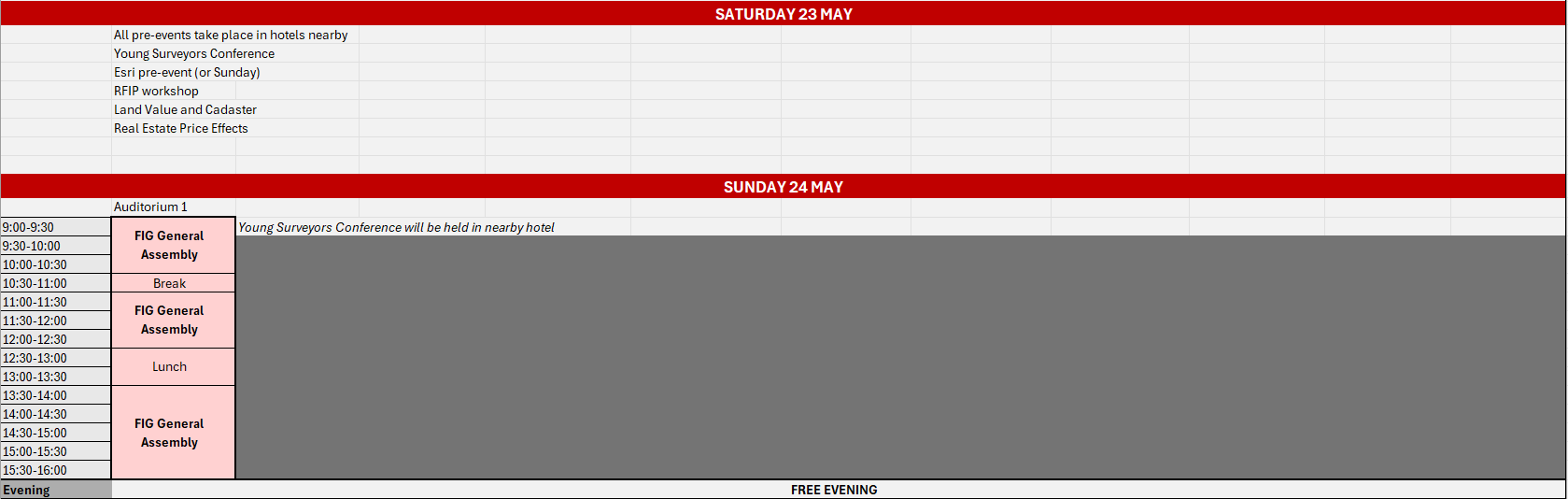 09:00 - 10:30 FIG Pre-events FIG General