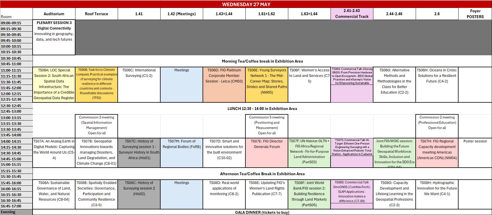 Evenings     Welcome Reception FIG Commission Dinners Gala Dinner